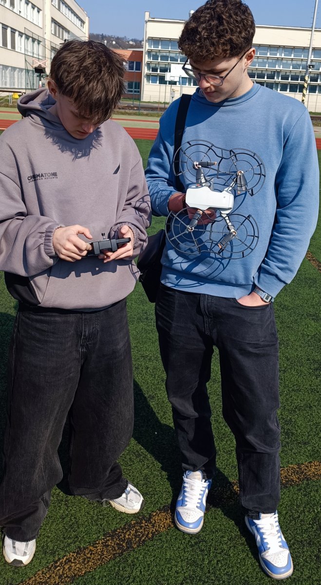 Poobede nám počasie konečne prestalo „štrajkovať“, a tak sme vybehli von lietať’ s dronmi. Podarilo sa nám natočiť pekné zábery vonkajšieho areálu školy.