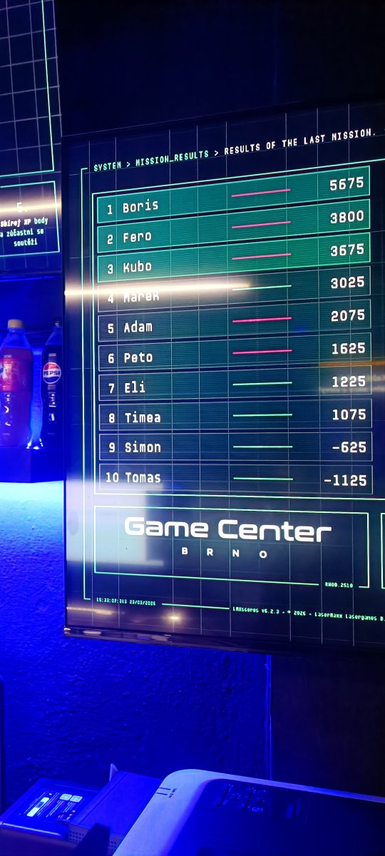 Deň sme zakončili laser game 5v5, kde sme sa opäť raz presvedčili, že tímová spolupráca dokáže byť rovnako dôležitá ako rýchle nohy. A keďže Brno má svoje čaro aj večer, prešli sme sa centrom a neobišli ani klasický brniansky hanbáč.