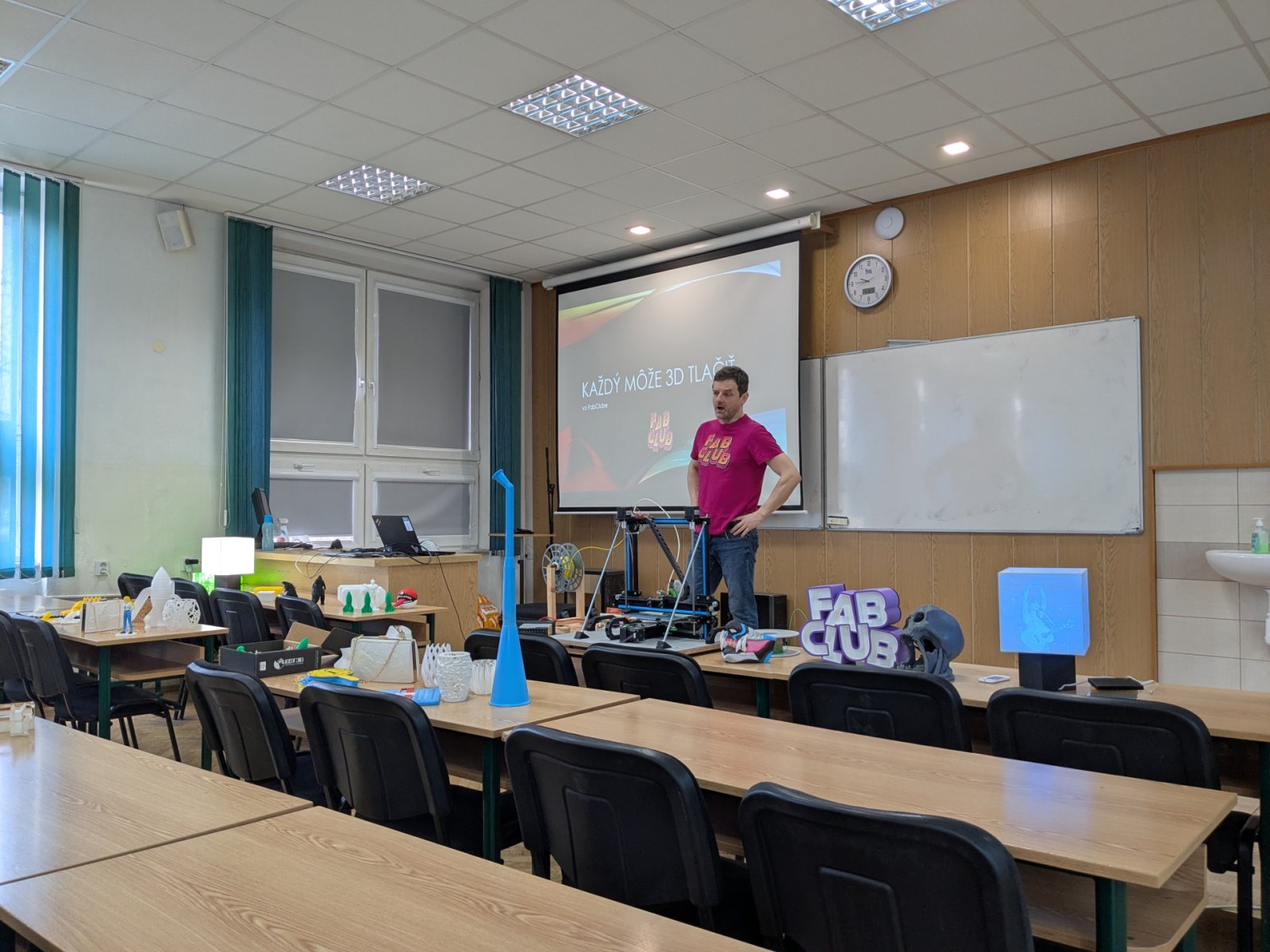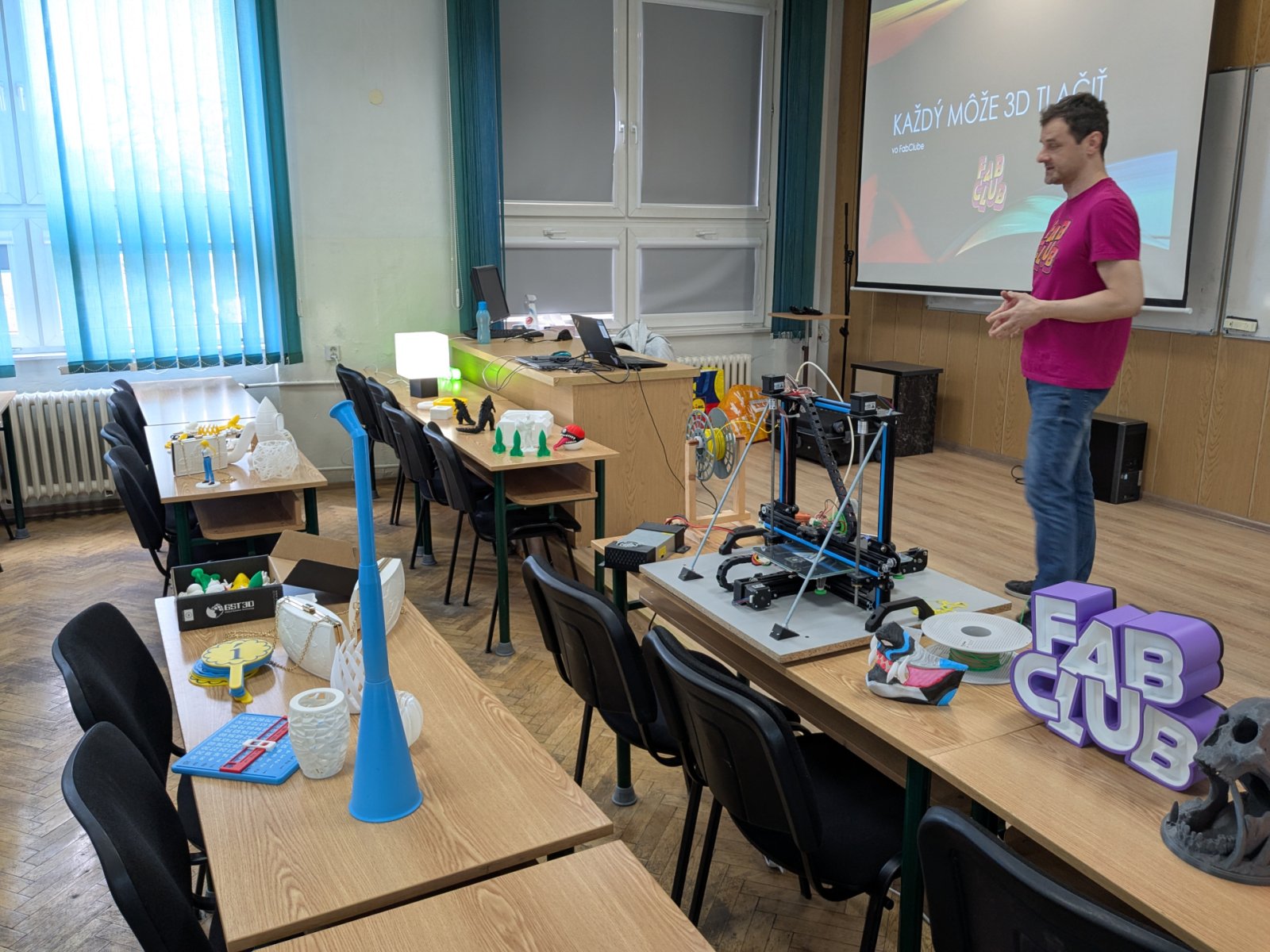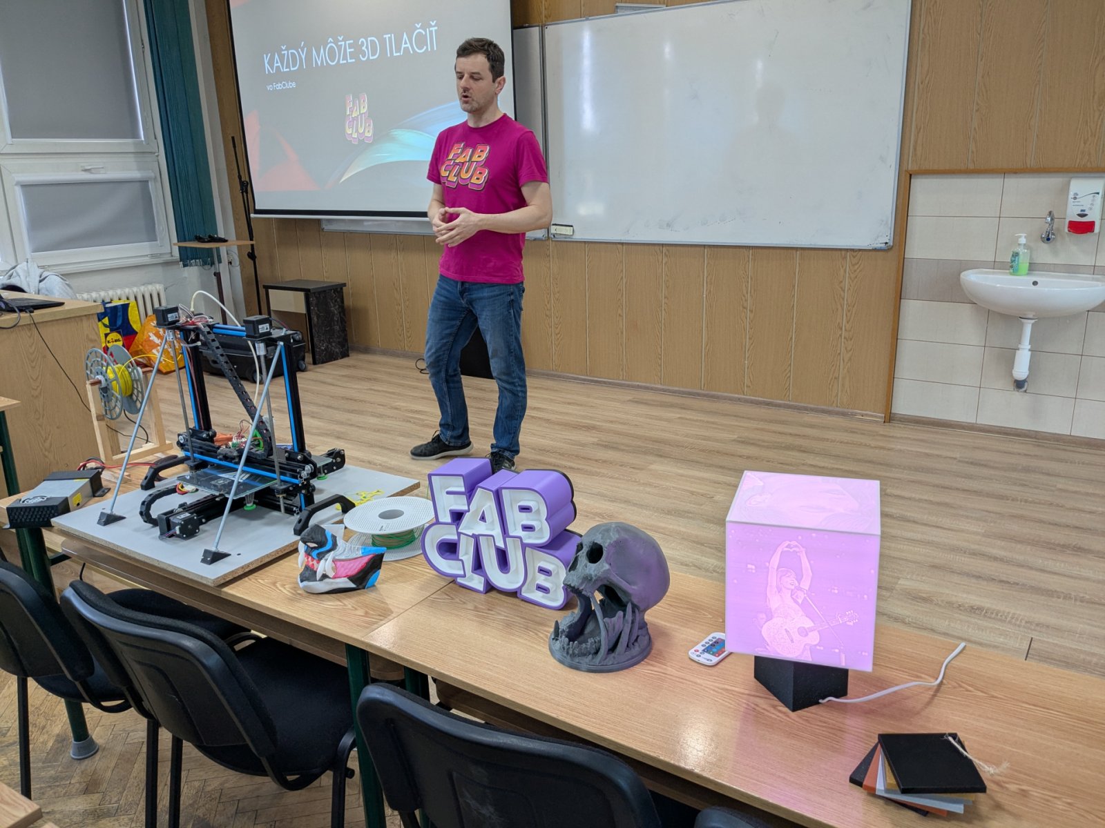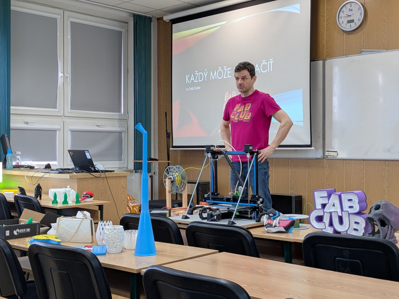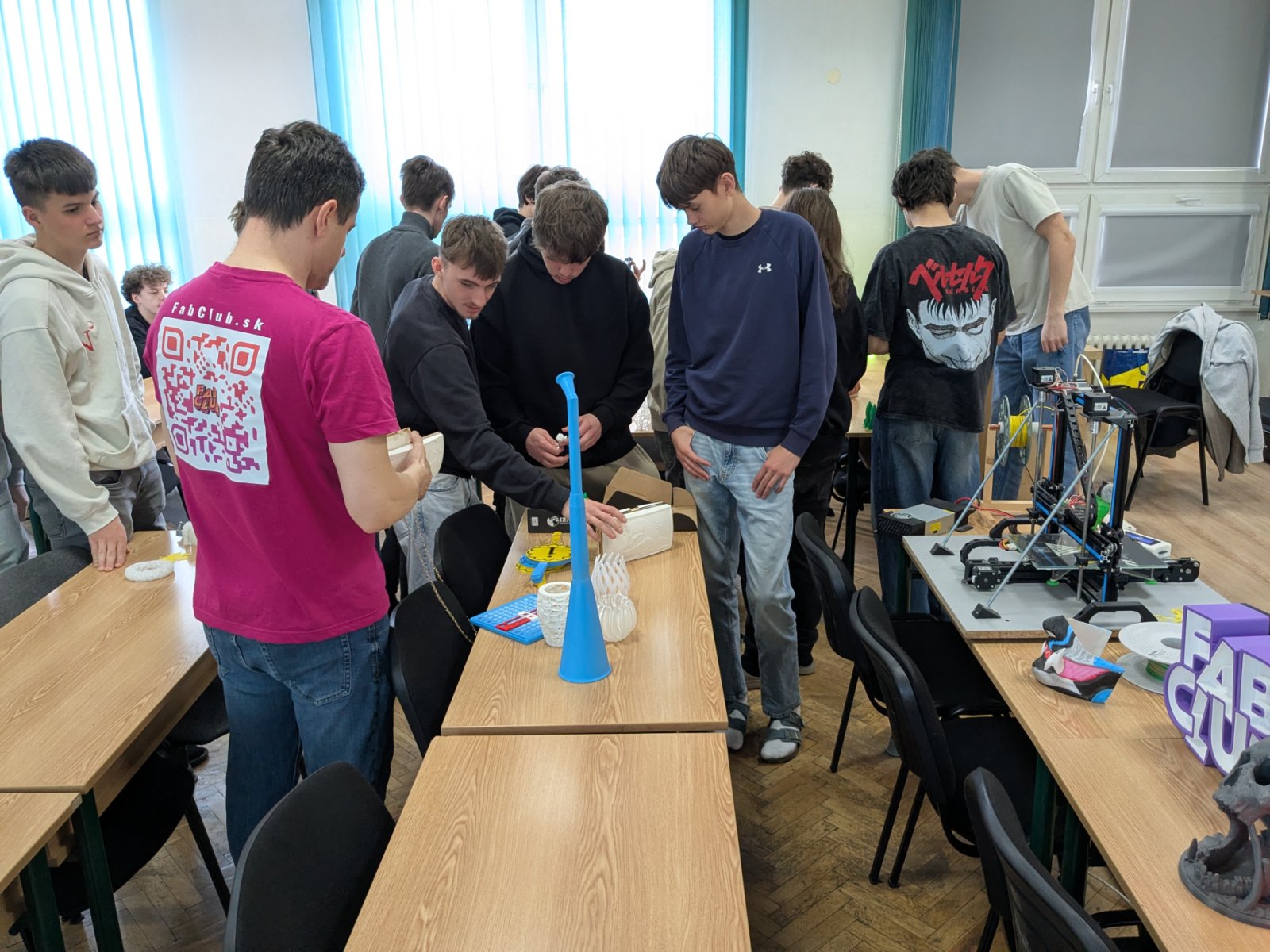 Dňa 26 .03. 2026 sa žiaci I. B a I. C triedy zúčastnili prezentácie p. Ing. Michala Mlynarčíka, ktorý predstavil svoj najnovší počin – kreatívnu dielňu s názvom FabClub, ktorá ponúka možnosť využívať technológiu 3D tlače odbornej, no aj neodbornej širokej verejnosti.