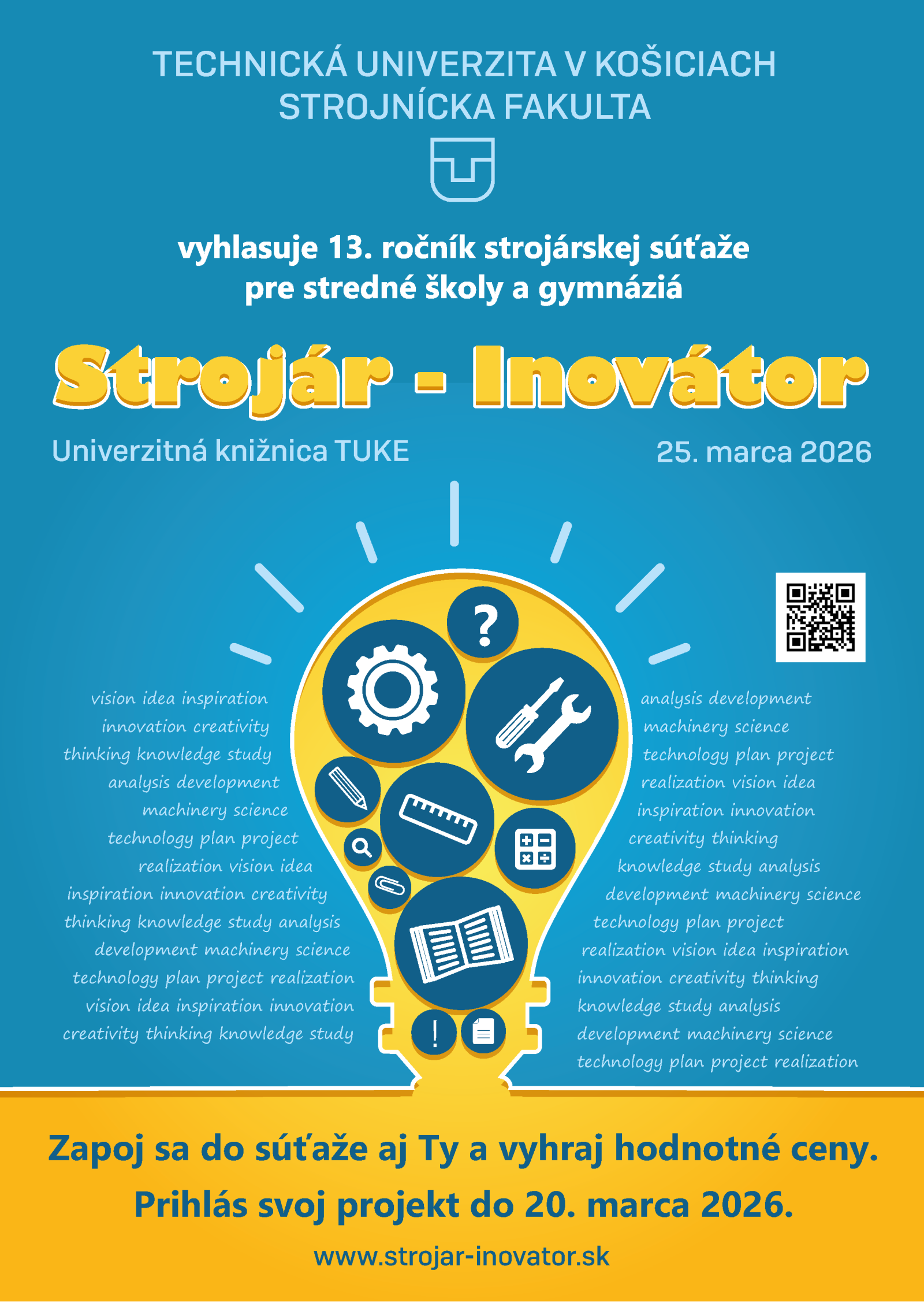 Dňa 25. marca 2026 sa žiaci IV. SB - Matúš Jurica, Miroslav Troščák, Sebastián Šimon zúčastnili v priestoroch Univerzitnej knižnice TUKE so svojim projektom súťaže Strojár - inovátor a získali 3. miesto: 100 € pre žiaka a 400 € pre školu.