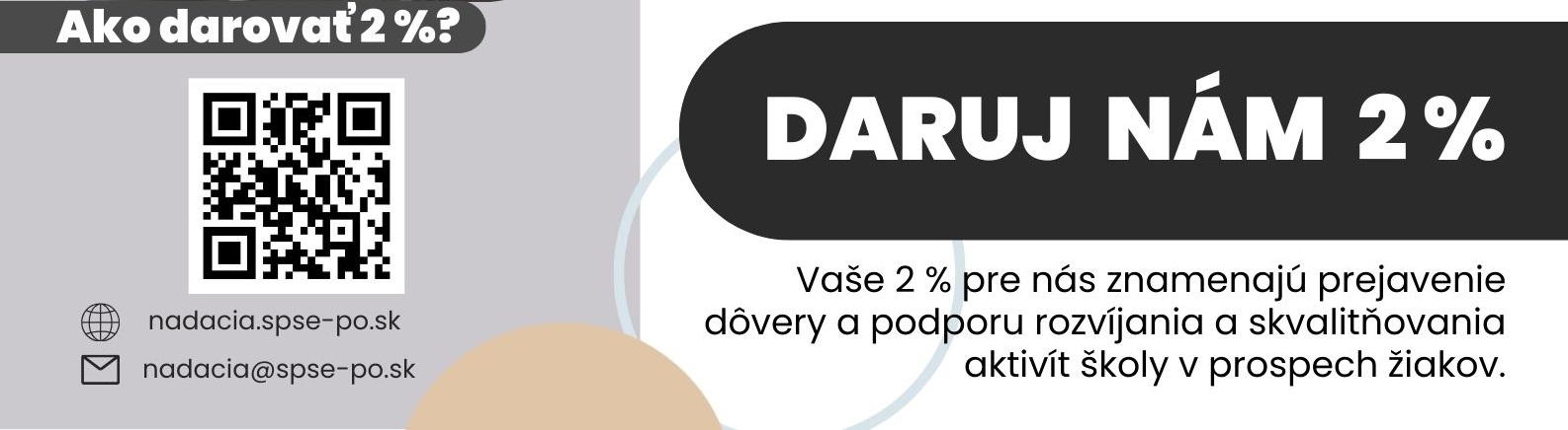 ďakujeme všetkým, ktorí podporili v roku 2025 darovaním 2 % zo svojich daní z príjmov nadáciu našej školy, vďaka čomu sme my mohli podporiť našich žiakov pri reprezentácii školy na rôznych súťažiach, zmodernizovať pre nich vzdelávacie priestory.