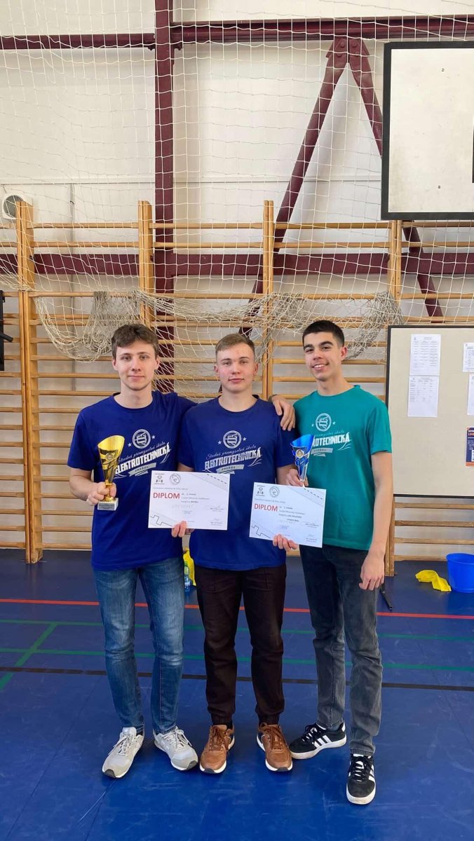 Ani cez prázdniny nezaháľali žiaci Lukáš Kičura, Adrián Seč z III. B a Matej Čabák z I. C. Za aktívnym oddychom si to namierili do Nitry, kde sa 4. marca 2026 na Gymnáziu Golianova konal 3.ročník súťaže Nitriansky Linefollower. Ako Lukáš odôvodňoval cestu: "Chceme si tam odskúšať nášho robota pred Robocupom", tak cestovanie aj testovanie dopadlo nadmieru úspešne, pretože naši Speshari zvíťazili a to hneď dvakrát. V hlavnej kategórii Linefollower, kde robot zdoláva prekážkovú dráhu vyznačenú kľukatou prerušovanou čiarou, bol ich robot najpresnejší a ako jediný získal už v prvom kole plný počet bodov. A v ich obľúbenej kategórii Racing, čo sú vlastnoručne zhotovené robotické formule na diaľkové ovládanie bola formula Spesharov jednoducho najrýchlejšia. Súťažilo 18 tímov zo 7 škôl. Chlapcom gratulujeme a prajeme im veľa ďalších robotických úspechov.
