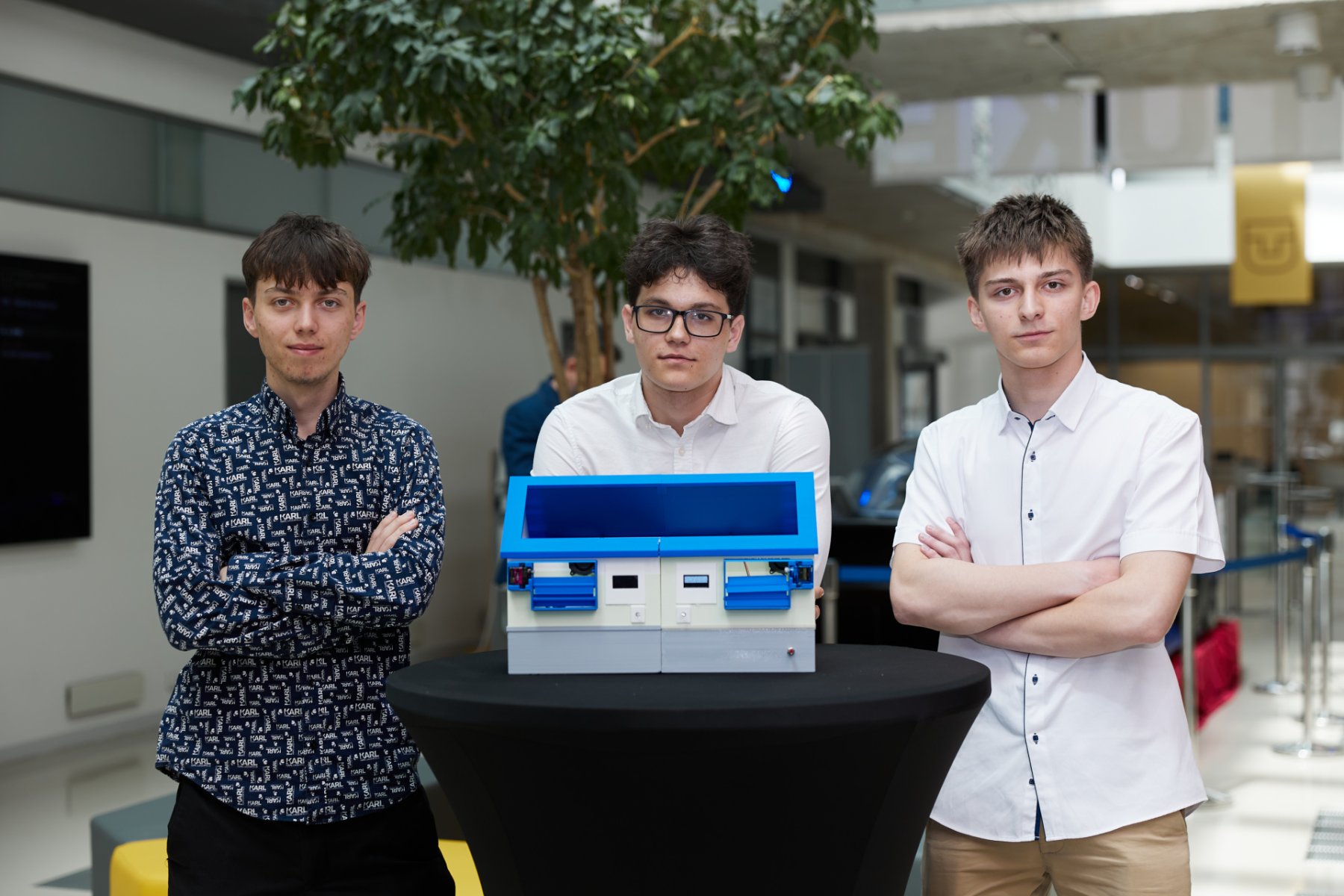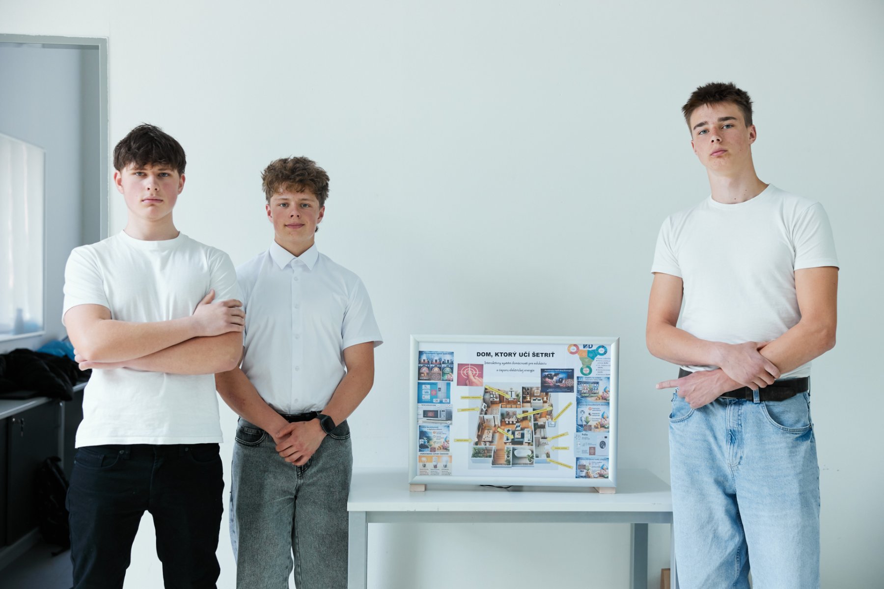 Druhý tím – Tri fázy, všetci z II. B, v zložení: Oliver Fučo, Oliver Košiba a Antónia Pavúková boli s učebnou pomôckou, ktorá prakticky ukazuje elektroinštaláciu so SMART prvkami. Projekt je komplexný, obsahuje reálny rozvádzač v byte v sústave TN-S. Rozvádzač obsahuje všetky istiace, ochranné súčiastky a elektronické moduly Sonoff. Pomocou siete WIFI sa dajú inštalované moduly programovať, automatizovať a riadiť zariadenia v dome. Cieľom tohto projektu je dosiahnuť čo najnižšiu spotrebu elektrickej energie počas zvýšenej ceny a nedostatku na strane zdrojov pomocou dostupných SMART zariadení a mobilnej aplikácie. Návrh riešenia na optimalizáciu siete pri prebytku energie a následnom zapojení spotrebičov. Vyrovnanie a stabilizácia odberového diagramu spolu s maximálnou rezervovanou kapacitou (MRK). Zber dát po zavedení SMART opatrení pomocou elektronického elektromeru s prenosom do mobilnej aplikácie.