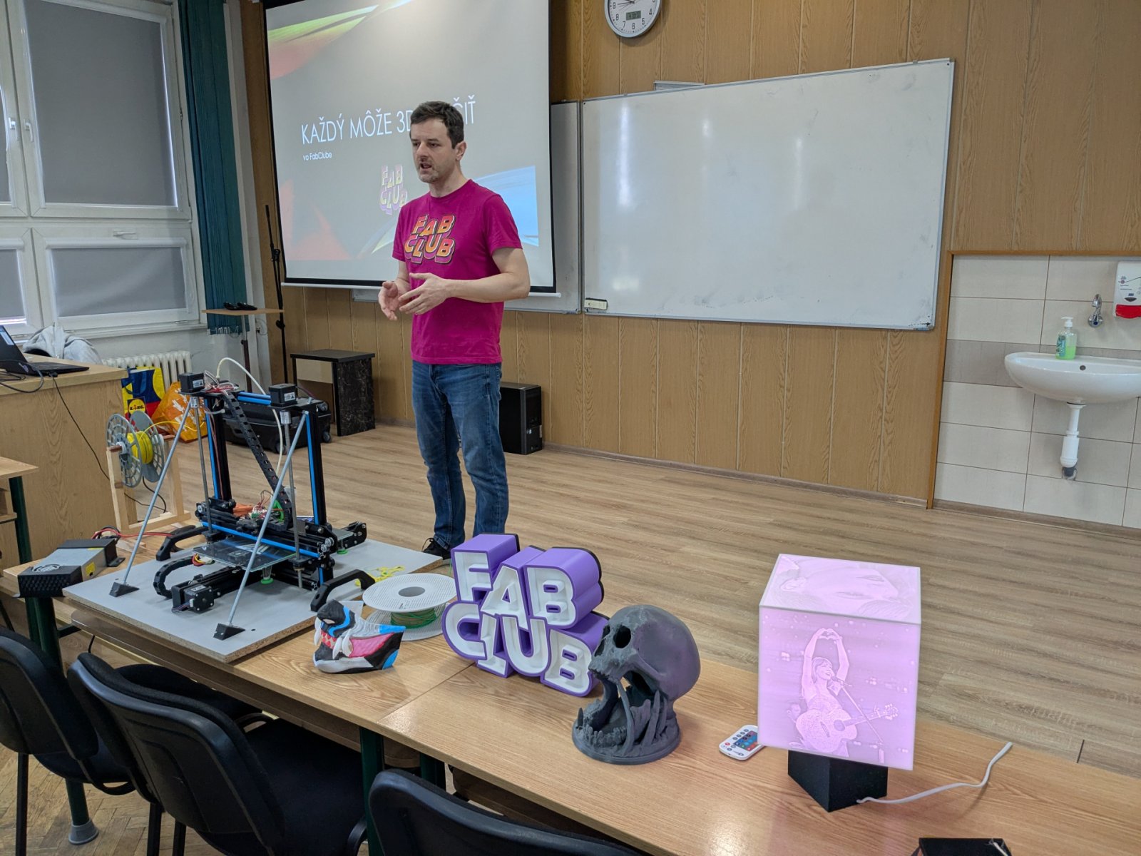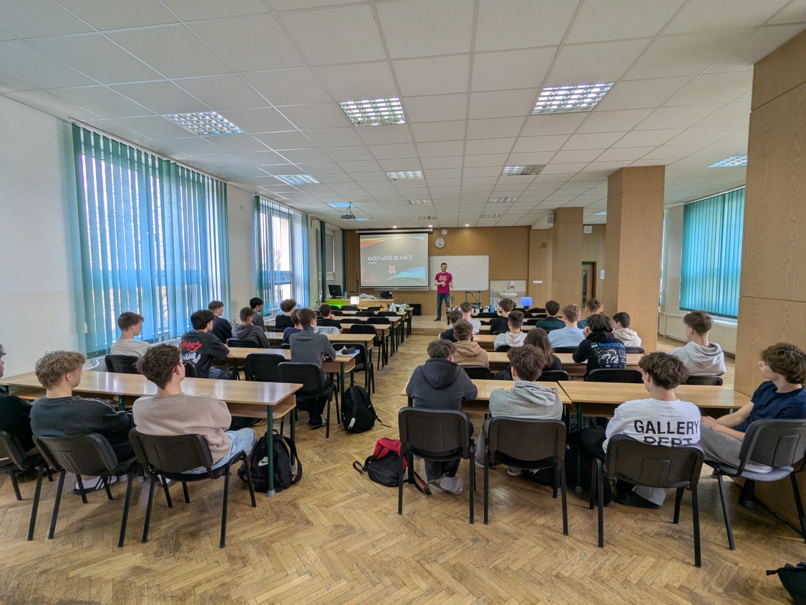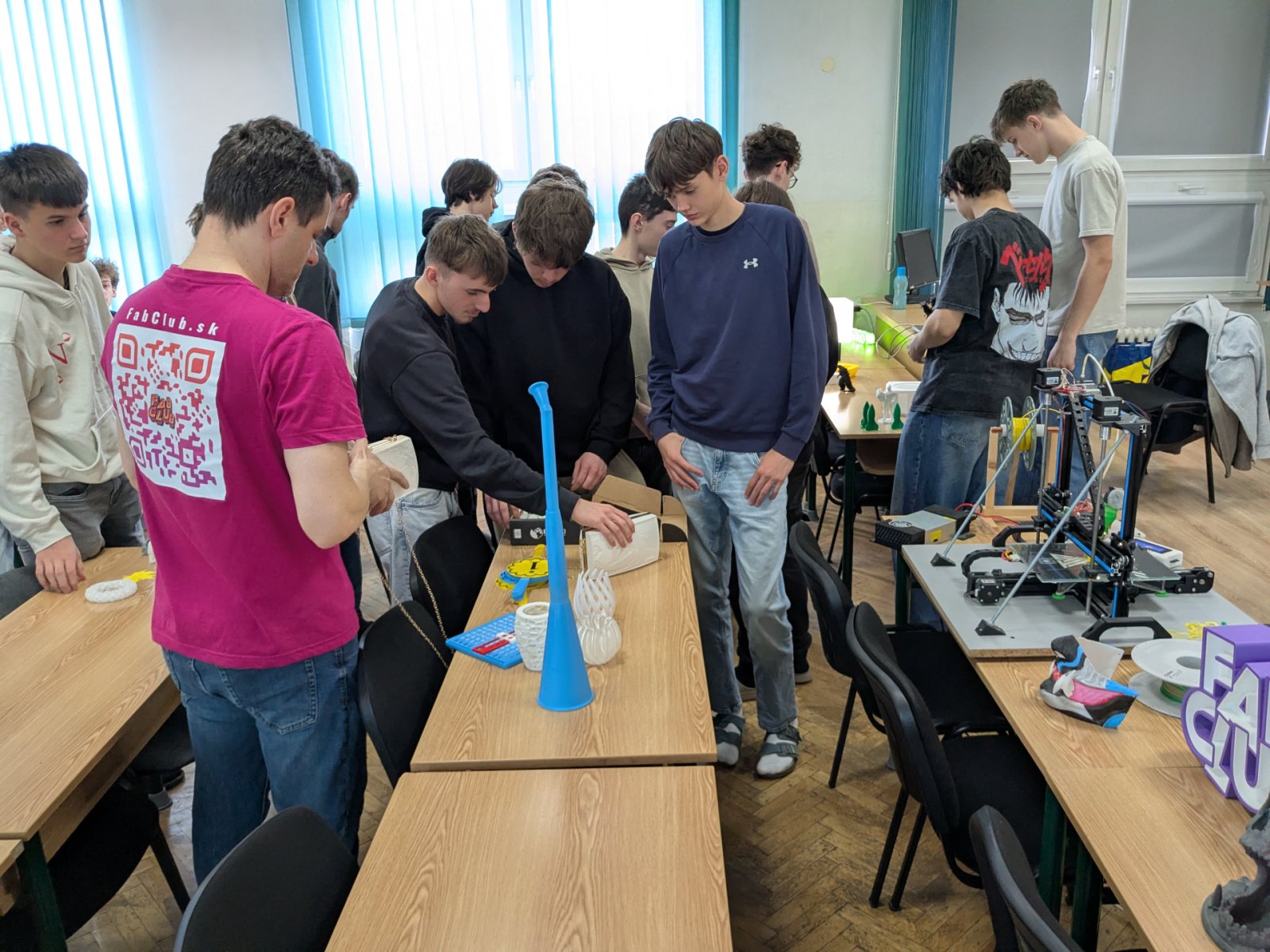Dňa 26 .03. 2026 sa žiaci I. B a I. C triedy zúčastnili prezentácie p. Ing. Michala Mlynarčíka, ktorý predstavil svoj najnovší počin – kreatívnu dielňu s názvom FabClub, ktorá ponúka možnosť využívať technológiu 3D tlače odbornej, no aj neodbornej širokej verejnosti.